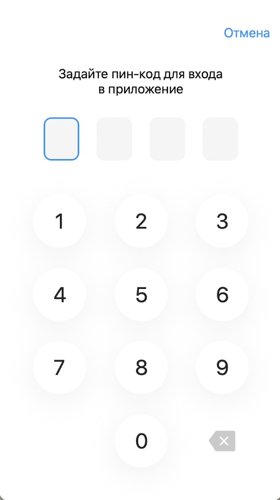 После успешной авторизации вы можете задать пин-код для быстрого входа в мобильное приложение.