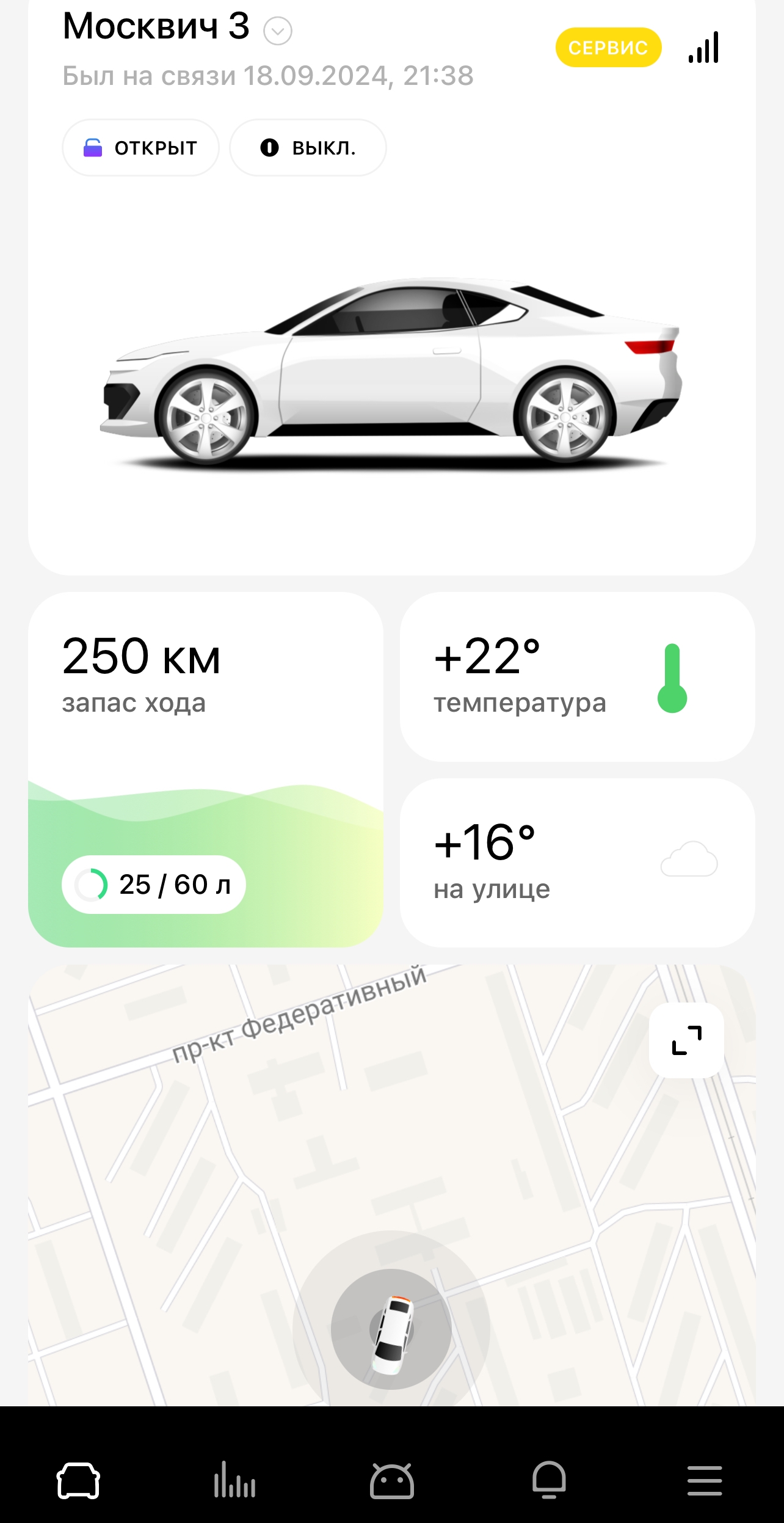 В приложении доступна информация по запасу хода и об уровне оставшегося количества топлива в баке автомобиля в км/л.