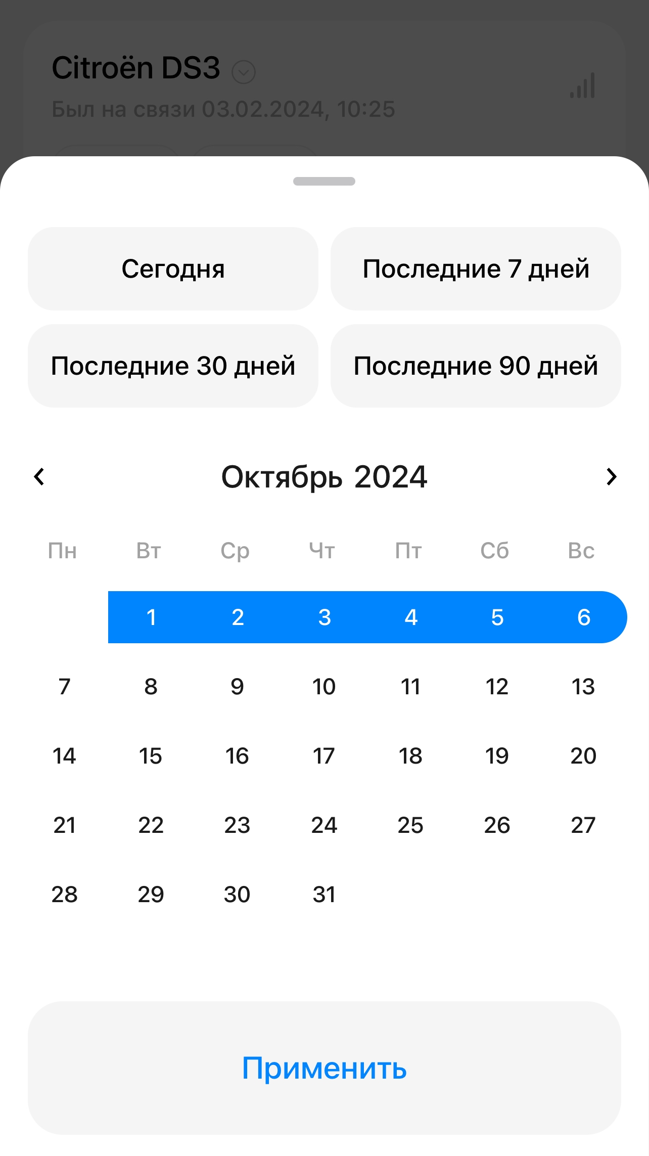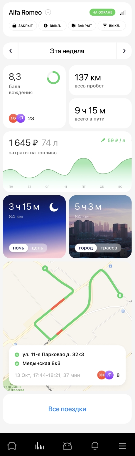 На экране "Статистика" отображается следующая информация за выбранный период (по умолчанию - неделя):